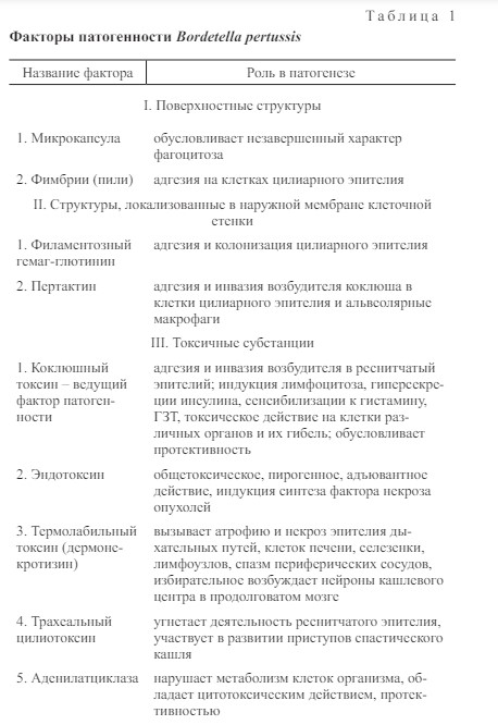 Основной токсин – коклюшный токсин, который участвует в патогенезе. Кроме того, бордетеллы выделяют эндотоксин, термолабильный токсин и другие вещества.